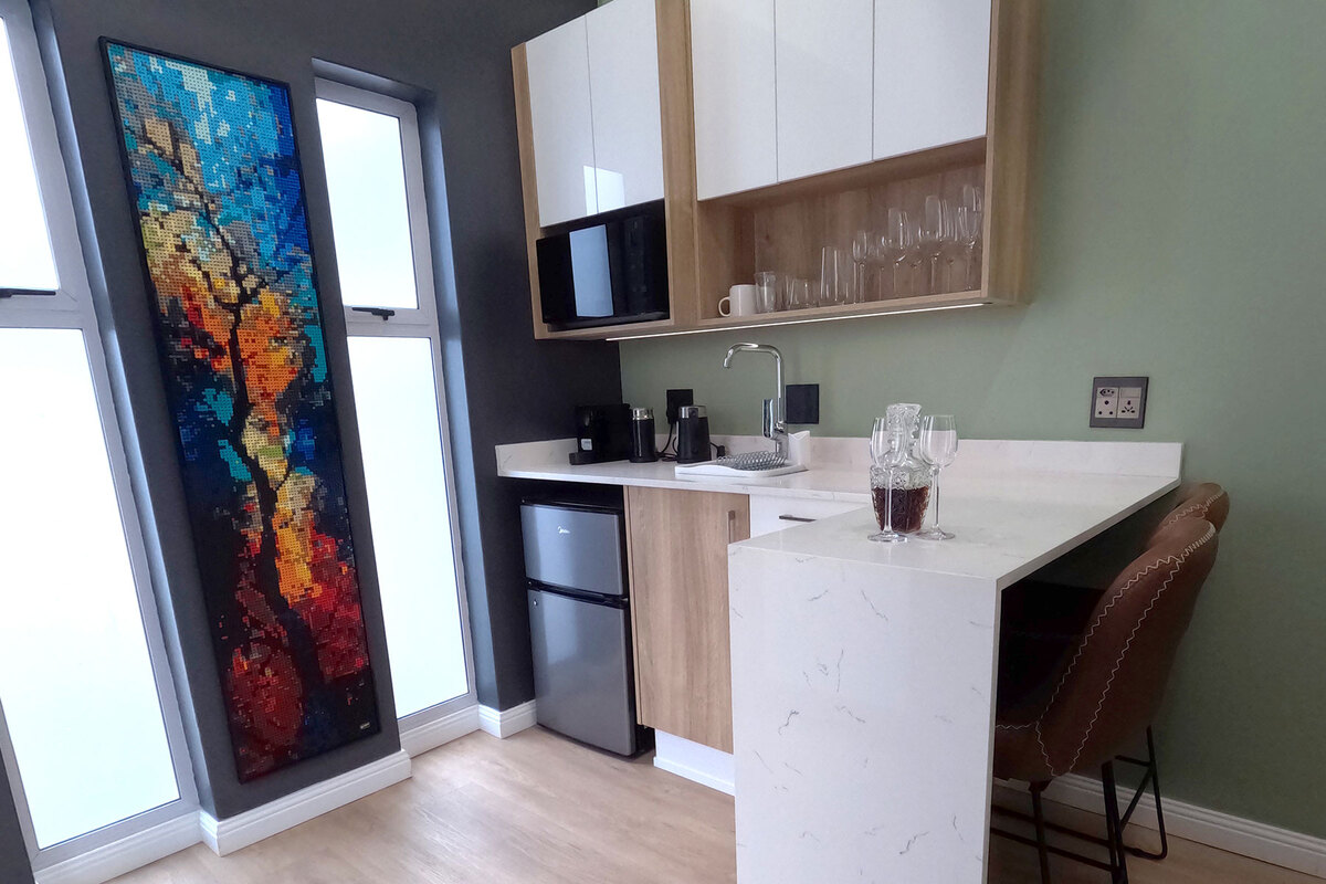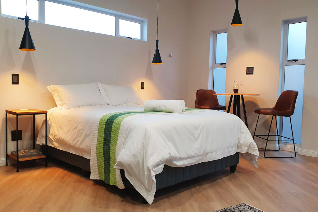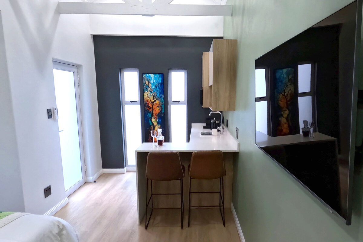 Experience the ultimate in modern luxury with Unit 1, a beautifully designed self-catering suite perfect for couples or solo travelers. Enjoy a plush extra-length queen-size bed, a fully equipped kitchenette, and contemporary finishes throughout. Whether you’re here for a romantic getaway, business trip, or quiet retreat, Unit 1 provides the ideal balance of comfort and convenience. Stay connected with free high-speed Wi-Fi, relax in air-conditioned comfort, and take advantage of complimentary on-site parking.
