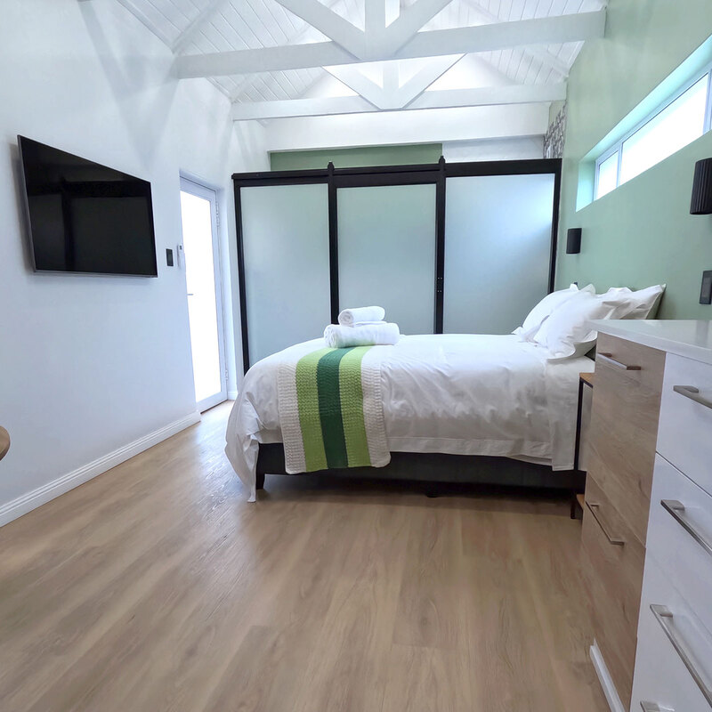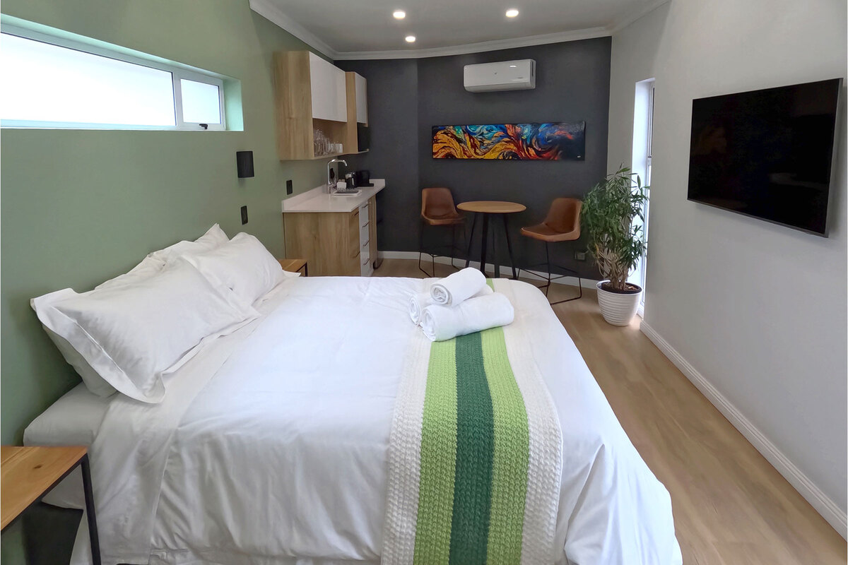 Discover effortless elegance in Unit 2, a tranquil escape offering all the comforts of home with a touch of sophistication. This modern unit features a luxurious queen-size bed with extra length, a sleek kitchenette equipped for self-catering, and premium finishes that invite relaxation. Perfect for couples or solo guests seeking a peaceful retreat, Unit 2 includes free Wi-Fi, air conditioning, and secure parking — everything you need for a restful, rejuvenating stay.